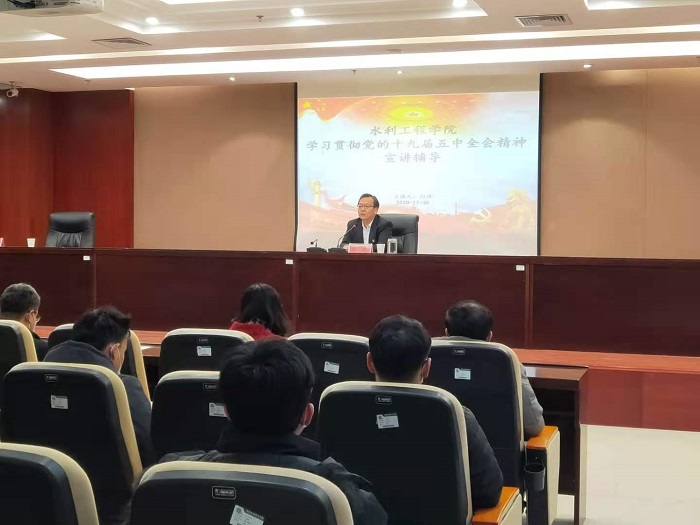 11月30日上午,在弘文守正楼九楼报告厅,学校党委副书记、校长向辉向水利工程学院师生宣讲党的十九届五中全会精神,回顾我国现代化建设的历史进程,共话党和国家事业取得的历史性成就,展望“十四五”和2035年发展的...