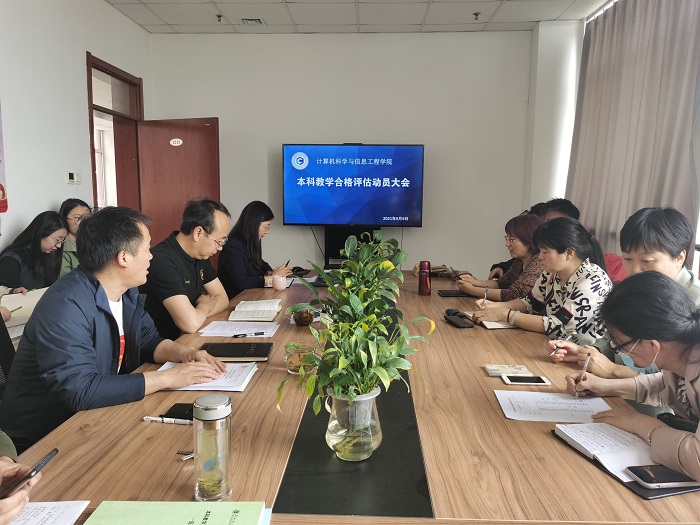为进一步做好本科教学工作合格评估工作,5月6日,计算机科学与信息工程学院召开本科教学工作合格评估动员大会。院长崔炳德主持会议,学院全体教师参加会议。 贾冬青副院长首先带领大家学习了《普通高等学校本科教学工...