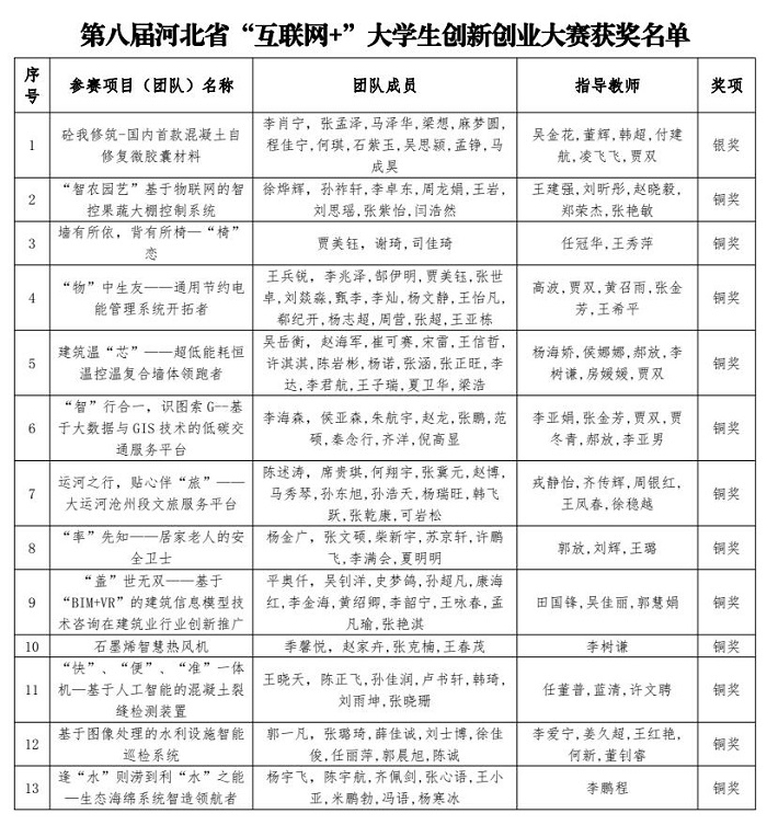 近日,河北省教育厅公布了第八届河北省“互联网+”大学生创新创业大赛获奖名单,我院学子获得银奖1项、铜奖12项的优异成绩,学院获得优秀组织奖,实现我院在该项赛事中获奖数量和质量的双突破。 河北省“互联网+”大...