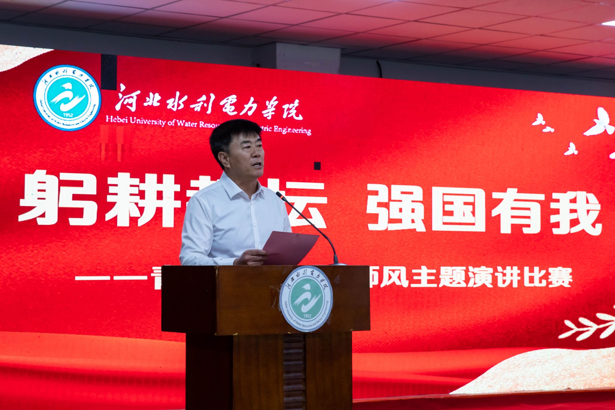为学习贯彻落实党的二十大精神和习近平总书记教师节重要指示精神,大力弘扬教育家精神,建设一支有理想信念、有道德情操、有扎实学识、有仁爱之心的教师队伍,根据学校师德师风建设月活动安排,我校“躬耕教坛,强国有我”青年教师师德师风主题演讲比赛于10月19日下午在大学生活动中心举行,崔立功副校长亲临比赛现场,各教学单位领导、教师代表共200余人观看了比赛。比赛由党委教师工作部伊淑霞副部长主持。为体现比赛的公平公正和庄重严肃,...