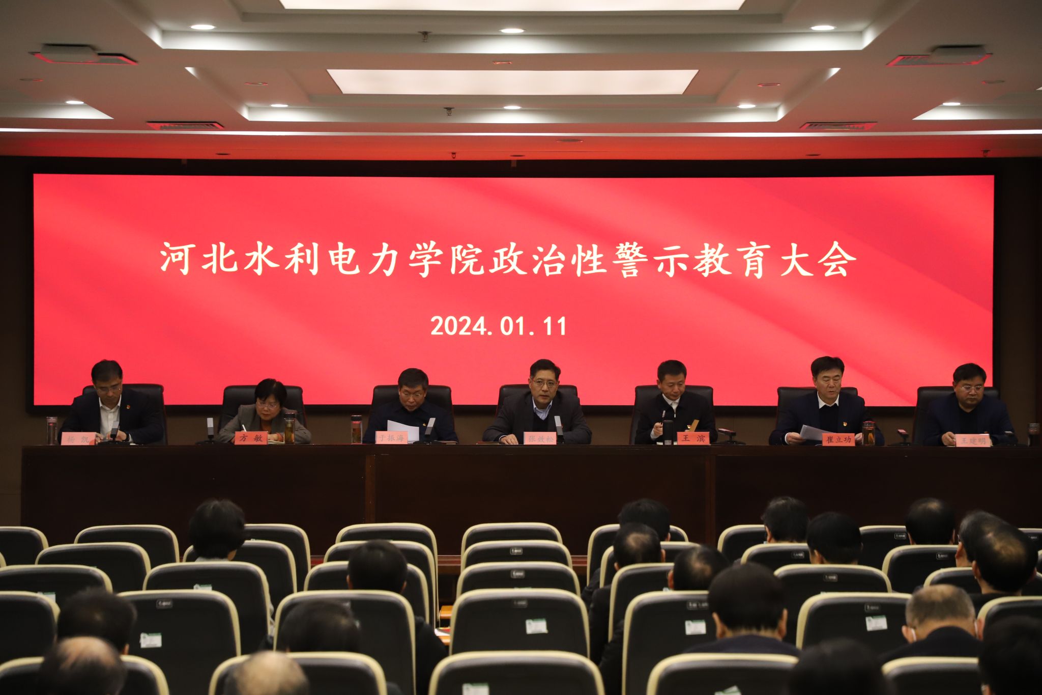 1月11日,我校在弘文守正楼9层报告厅召开2024年寒假工作会议。校领导班子全体成员出席会议,全体正科职以上干部参加会议。会议由副校长于振海主持。分管校领导分别对2023年分管工作进行了回顾,对寒假工作进行了部署,对2024年工作进行展望并提了具体要求。王滨对今后学校工作提出五点要求:一是坚持为学生提供良好的大学教育;二是坚持教育质量生命线;三是坚持人才强校的发展思路;四是坚持创新驱动,开放办学的理念;五是持之以恒,...