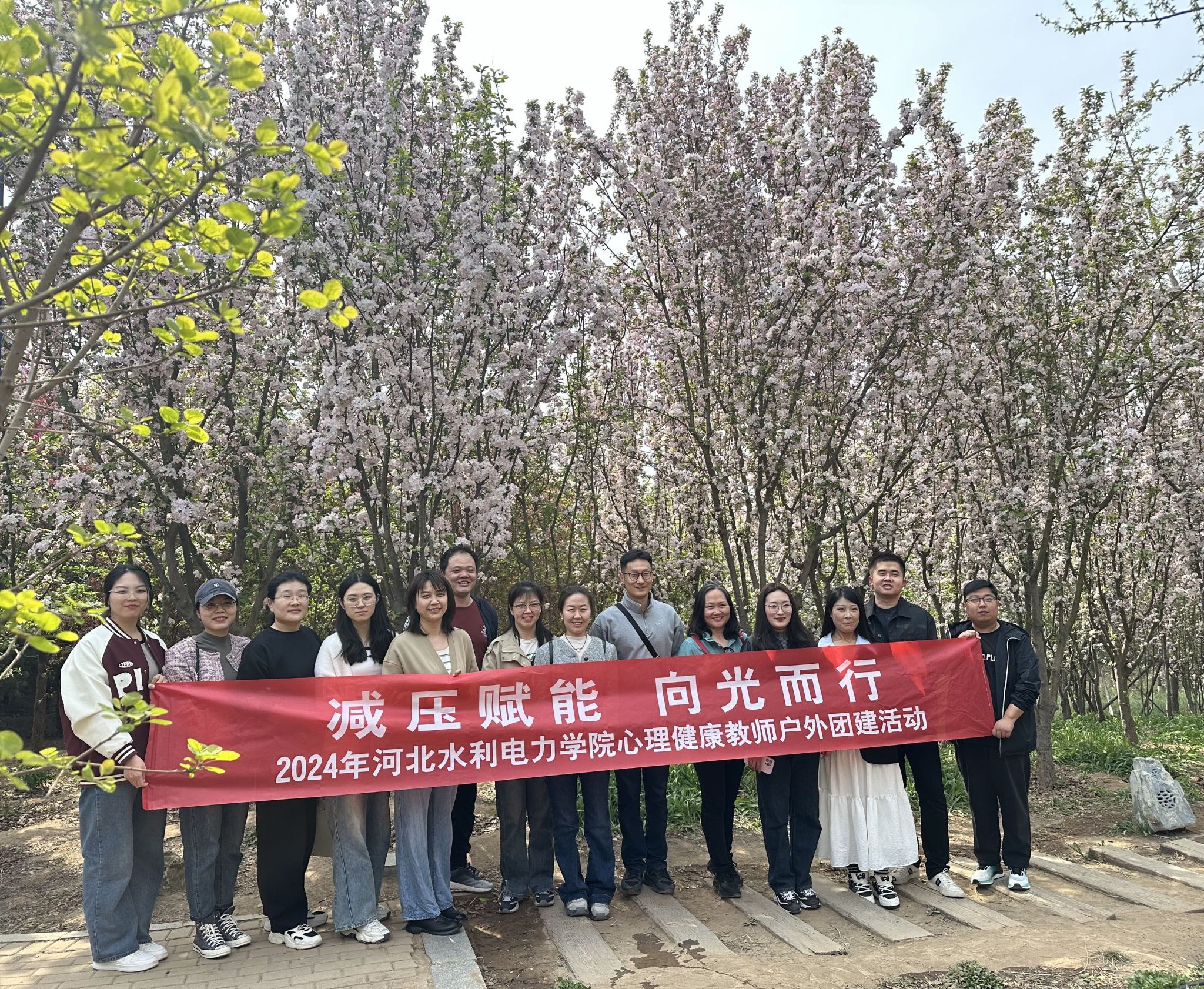 阳光和煦,微风徐徐。伴着春暖花开,我校党委学生工作部于4月7日组织全体专兼职心理健康教师开展“减压赋能,向光而行”户外团建活动,让大家在“四月芳菲,桃花盛开”的大自然中,放松身心、缓解压力、促进交流,增强团队凝聚力。为进一步增强心理健康教师与辅导员的联动力量,提升育人合力,本学期学工部在一线辅导员中选任5名兼职心理健康教师,形成辐射各系、专兼职相结合的20名心理健康教师团队。此次活动由学工部副部长路鹏主持,...