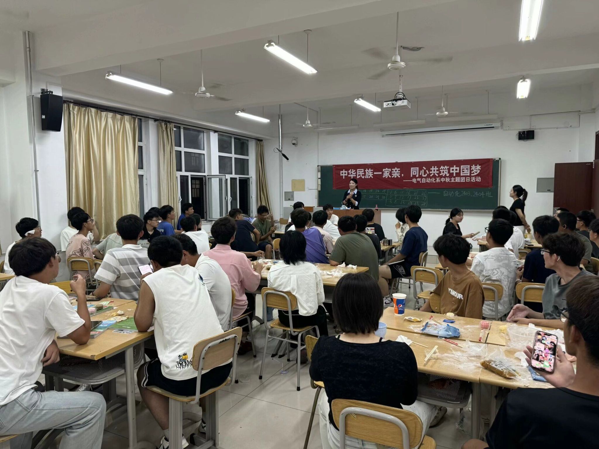 为弘扬中华民族优秀传统文化,增强同学们的民族认同感和团结意识,9月14日,电气自动化系精心组织了一场以“中华民族一家亲,同心共筑中国梦”为主题的中秋主题团日活动。此次活动由王静静老师主持,自动化2403、自动化2404班的同学们积极参与,共同体验传统节日的魅力。在活动现场,王静静指导同学们学习手工月饼的制作技艺。在老师的悉心传授下,同学们兴致勃勃地投入到月饼的制作中,从揉面、包馅到压模,每一步都倾注了同学们的用心和热情。...