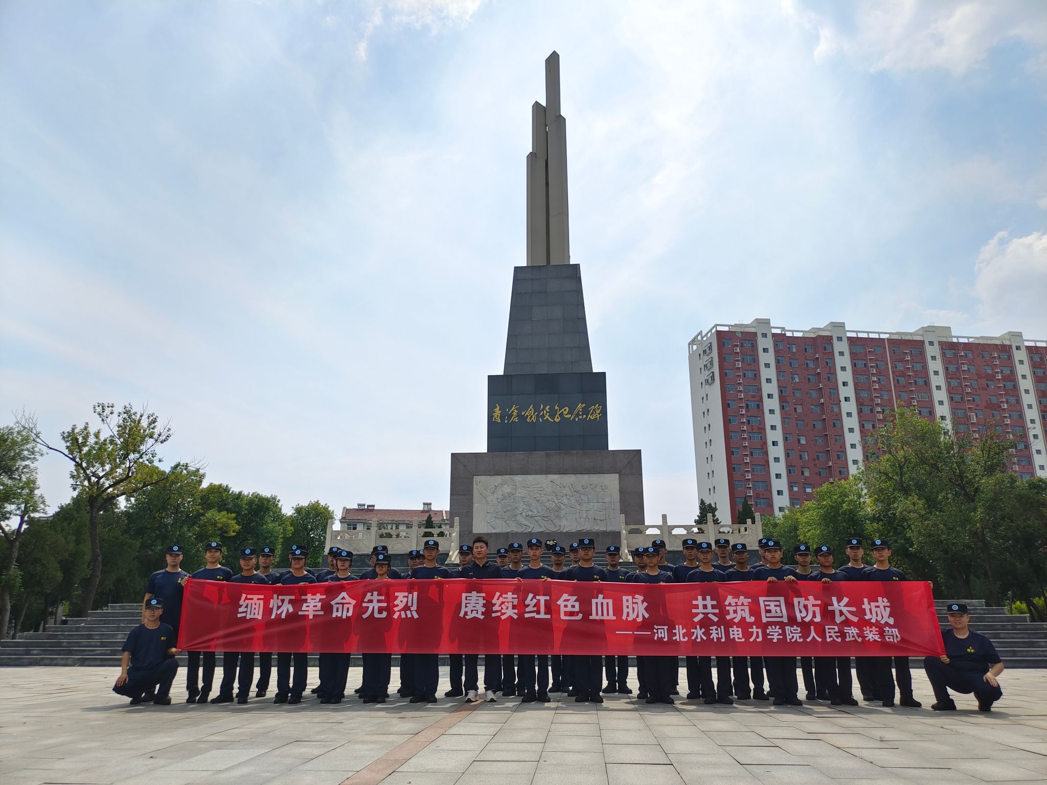 为纪念中国人民抗日战争暨世界反法西斯战争胜利80周年,缅怀抗战英烈、弘扬抗战精神。9月3日中午,我校人民武装部组织国防后备营全体教官、退役士兵在校生代表共40余人赴沧州市烈士陵园,开展“缅怀革命先烈 赓续红色血脉 共筑国防长城”主题国防教育实践活动。通过沉浸式红色教育,重温抗战烽火岁月,感悟英烈精神,凝聚奋进力量,进一步坚定理想信念,担当时代使命。活动伊始,参加活动的党员面向鲜红的党旗,重温了入党誓词,响亮的誓言让大家更加坚定了为共产主义事业奋斗的决心。...