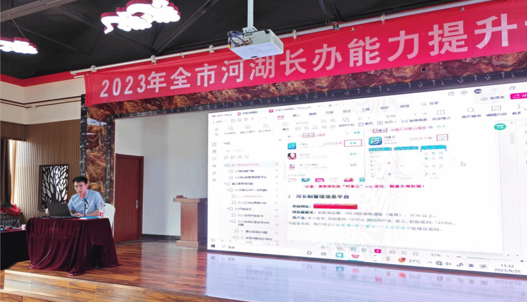 培训共分为三个阶段,第一阶段由知名河湖长制研究专家、河海大学博士生导师唐德善教授作《河湖长落实与幸福河湖建设》专题讲座。唐教授从河湖长制推进情况、河湖长履职规范、河湖长制典型案例以及幸福河湖典型案例四个方面进行了讲述,讲座理论联系实际,为学员献上了一场别开生面的授课,为沧州建设幸福河湖提出了许多“金点子”。他提出,河长制是解决我国水问题的根本大计,沧州要借助河长制东风,通过落实幸福河湖建设,安排好十四五“治本之策”,系统治理好河湖,实现“河畅、水清、岸绿、景美”的幸福河湖目标,进一步改善水生态环境,推进沧州可持续高质量发展,实现多赢,造福子孙后代。第二阶段由沧州市河湖长制办督察科副科长郑达讲授《河长制督查和巡河软件实际操作》,对于软件使用进行了详细讲解和演示,并对河湖长制工作人员在实际使用遇到的问题进行了解答。第三阶段由河北日报沧州记者站副站长周万良讲授《河湖长制新闻宣传方法及路径》。周老师结合多年工作和写作经验,用通俗易懂的语言和生动鲜活的事例,深入浅出地为参训人员讲解撰写河湖长制新闻的方法,并从新闻的标题、导语、正文、采访、投稿等方面进行了分析,对常见的几类新闻的采写进行了重点讲解。