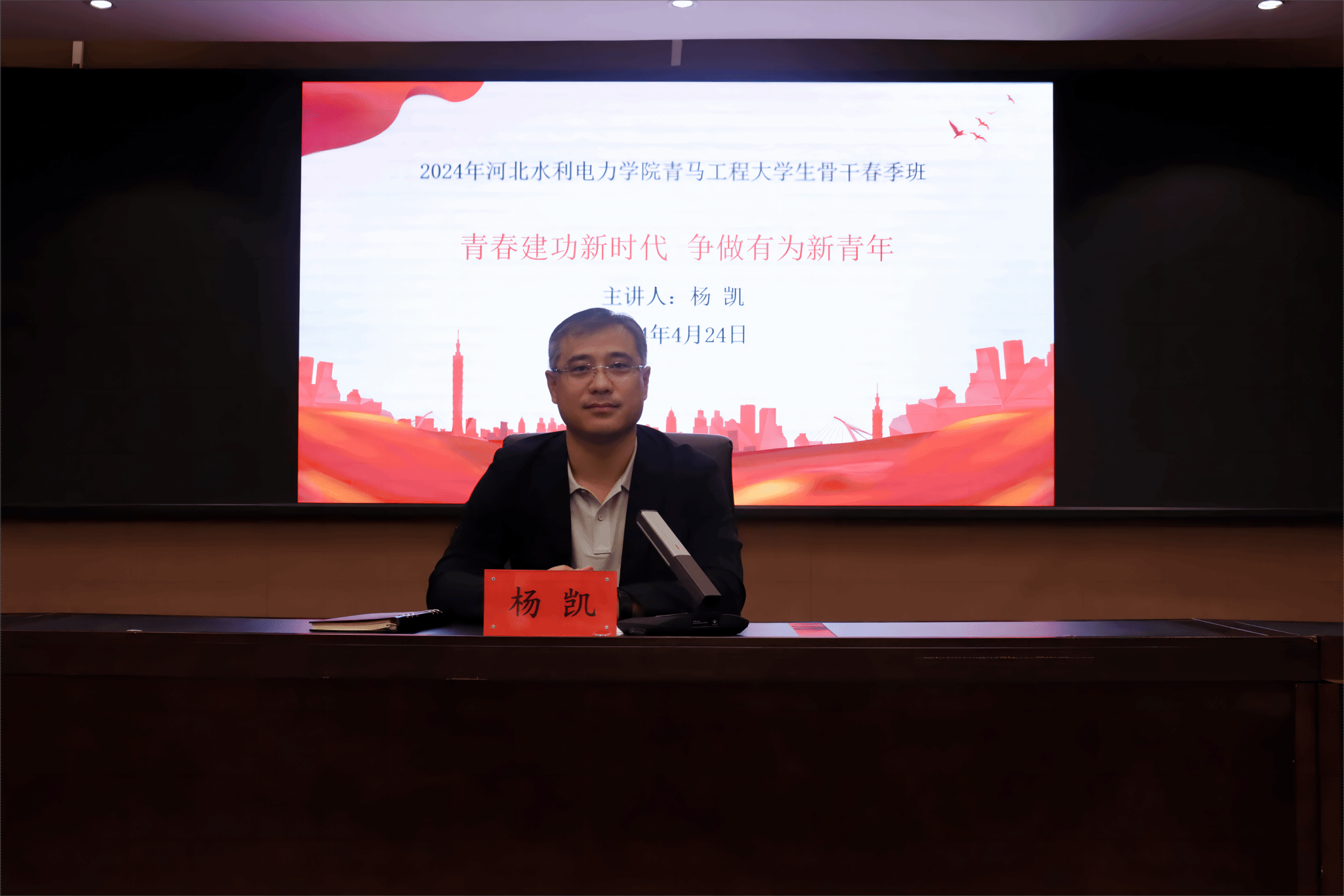 张效松在培训班开班仪式上对学员们提出了“提高认识,做一个有理论修养的新时代青年”“珍惜培训,做一个有坚定理想信念的新时代青年”“不忘初心,做一个有责任担当的新时代青年”三点要求。杨凯从“青年观的历史脉络与构成”“青年的价值体系与要求”以及“如何做好一名学生干部”等方面为学员们做了一场具有政治高度、理论深度和实践厚度的开班讲座。