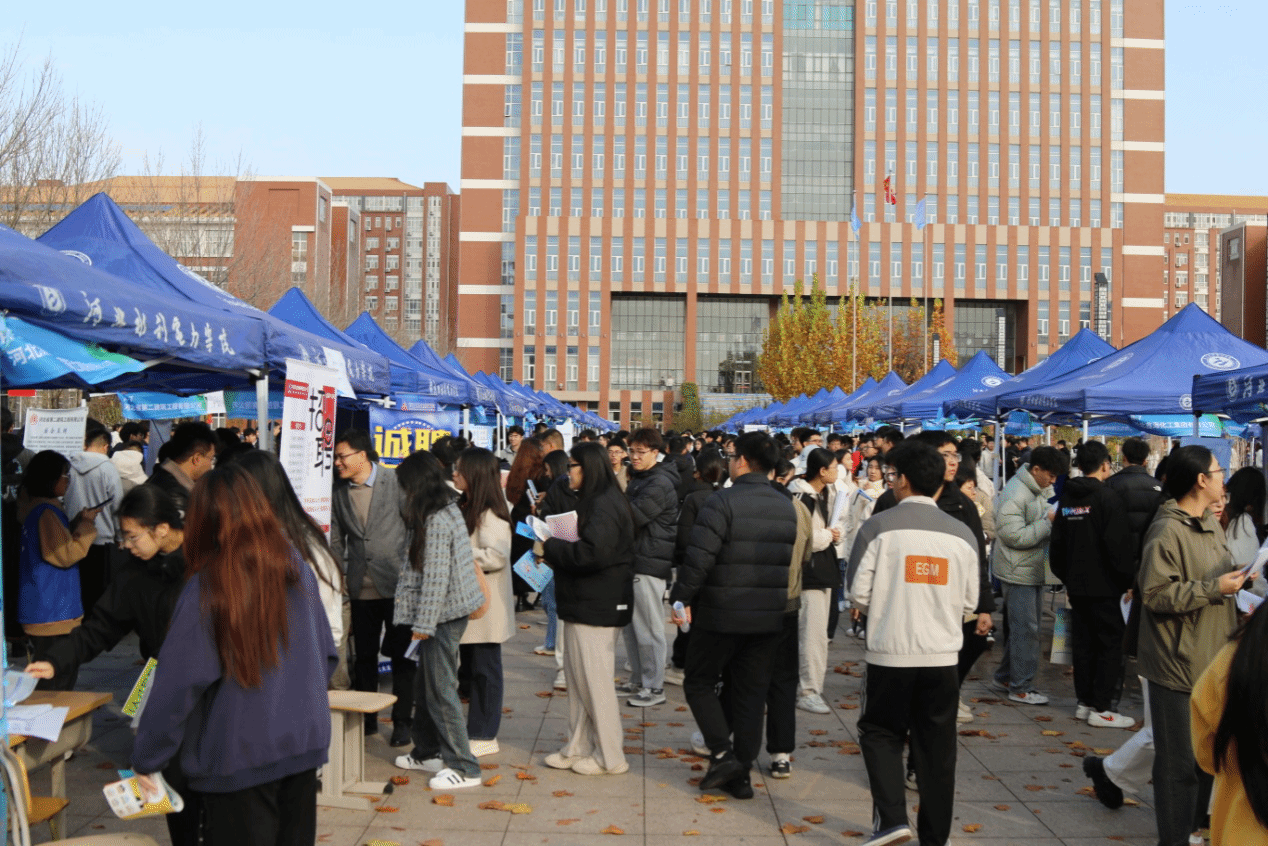 11月16日上午,我校在图书馆前广场举办2025届毕业生秋冬季校园双选会。共有来自河北、北京、天津、山东等各省市的192家单位到会参加,提供岗位7200余个,涉及水利、电力、建筑、信息、制造等多领域,现场达成签约意向人数1646人,直播带岗观看1.3万余人次。