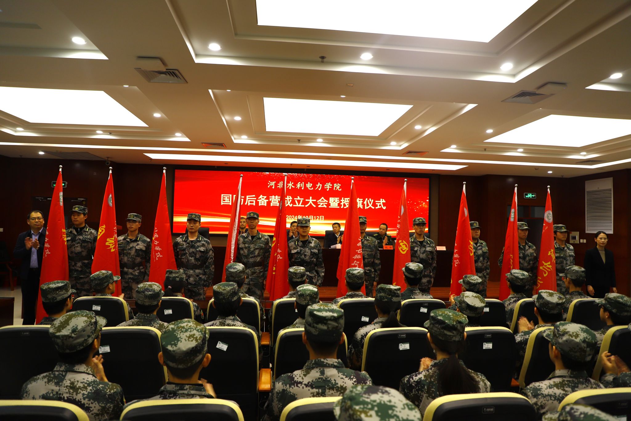 本次国防后备营成立大会暨授旗仪式成功召开,标志着我校国防教育工作迈出了重要一步。授予的是期望,赋予的是责任,承载的是精神,我校将以国防后备营成立为起点,扎实推进征兵工作常态化,进一步激励广大青年学生胸怀祖国、牢记使命、热爱国防、报效国家,以实际行动为学校大学生征兵及国防教育工作做出应有贡献!
