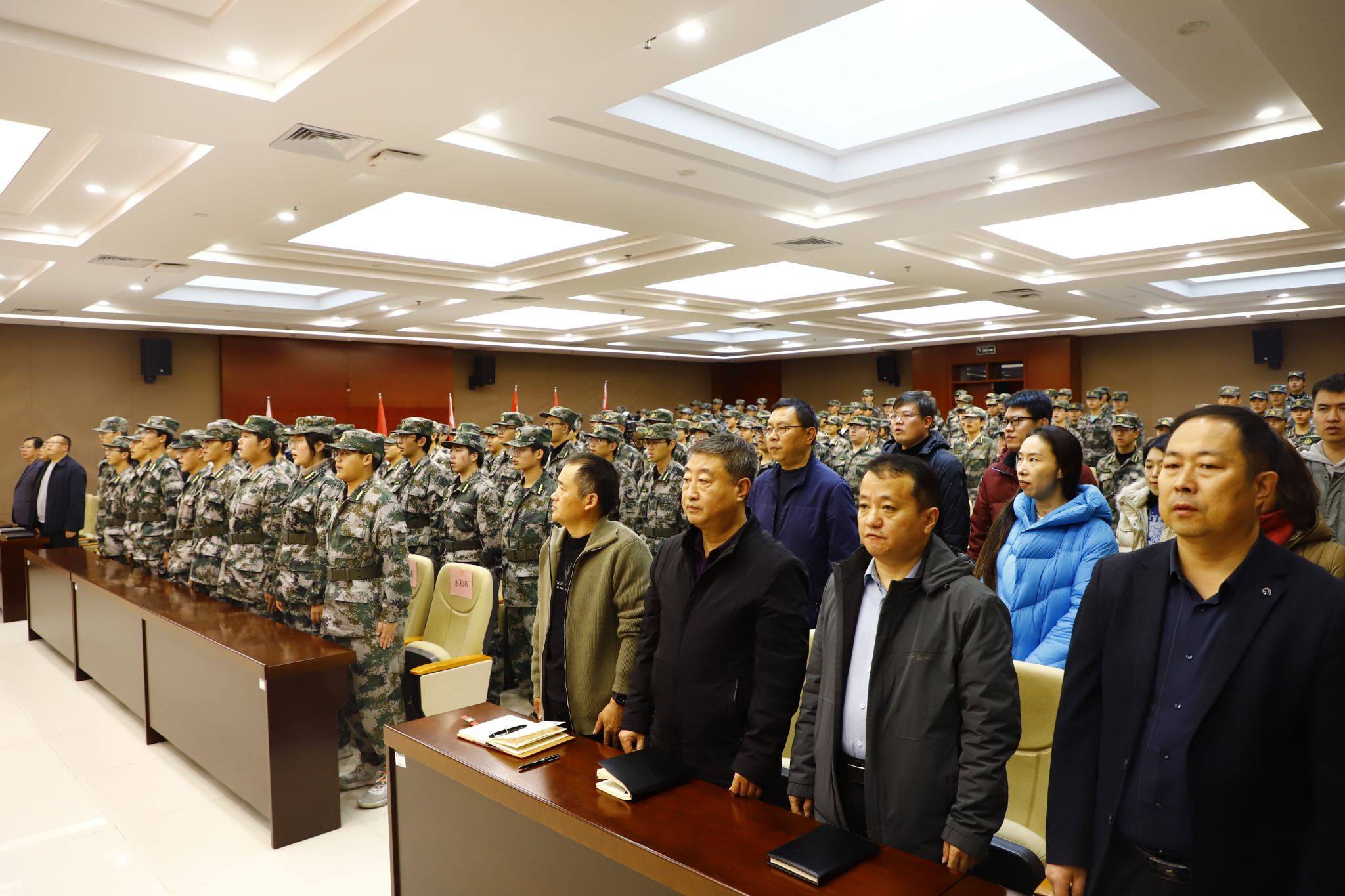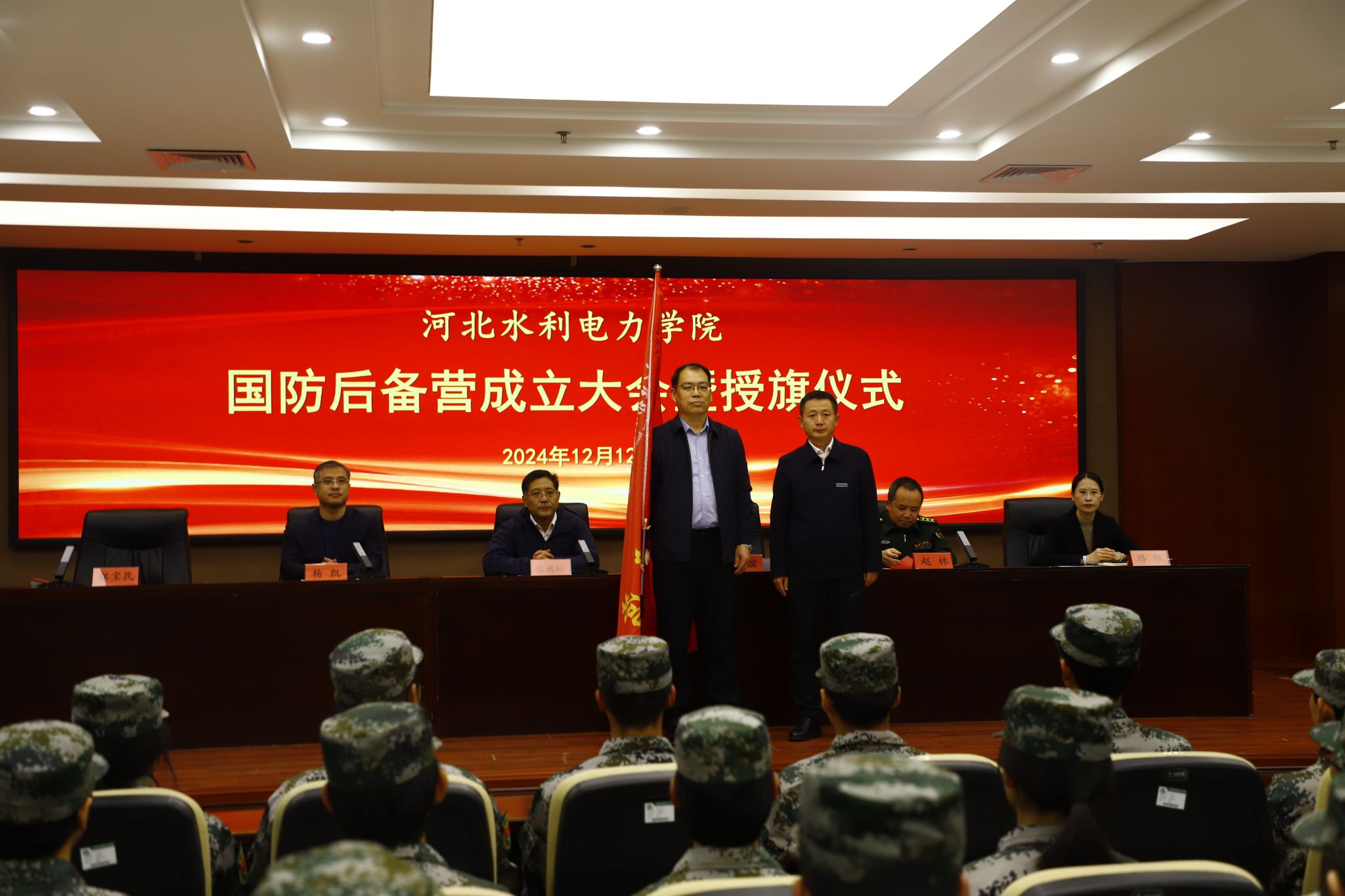 为深入贯彻习近平强军思想,落实“一年两征”、精准征兵、精准育苗部署安排,建立健全大学生征兵常态化长效机制。12月12日下午,我校国防后备营成立大会暨授旗仪式在弘文守正楼报告厅举行。学校党委书记张效松,党委副书记、校长王滨,副校长杨凯,运河区人民武装部部长赵林出席本次会议,大会由学校人民武装部部长郑宝民主持。