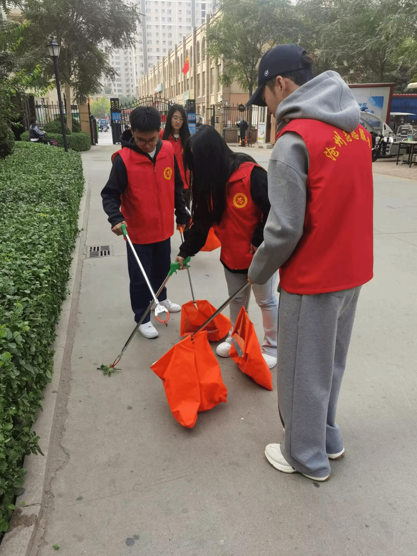 上午九点,三支部党员到达凤凰城社区,他们穿戴好志愿者服装,带着夹子、簸箕等工具,清扫街道、清掏绿化带垃圾杂物、捡拾白色垃圾、清理枯枝树叶和宠物粪便,认真清理每一处卫生死角,并对乱停车辆进行整理摆放。同时,志愿者们还积极向居民宣传创城知识,主动制止乱堆乱放、乱扔垃圾等不文明行为,提醒居民提高文明意识,让人人都成为环境清洁员、环境监督员。