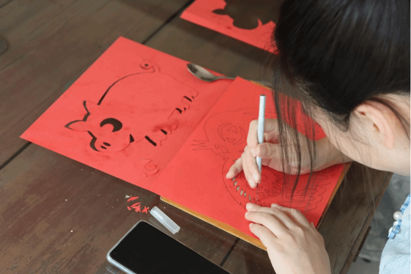 刻纸艺术源于剪纸而精于剪纸,有单色和彩色以及阴、阳刻之分。竹刻则是以刀代笔,在竹子上刻制书画等作品。2012年,刻纸和竹刻艺术被列入市级非物质文化遗产名录。“要完成一幅刻纸作品,比创作一幅工笔画还要复杂。首先,我们要将构思好的画稿画在硫酸纸上,接着把宣纸和画稿装订在一起,再把订好的画稿放在蜡板上,用特制的刻刀沿线条轮廓刻出来。因此,也需要有扎实的绘画功底”马振领说。同学们认真观摩学习,本次非遗活动不仅提升了大家对刻纸技术的兴趣,也让同学们对其有了更加深刻的了解与认识。乐道拾遗,匠心铸遗,使同学们能够将专业学习与文化传承相结合,深度体验璀璨夺目的非物质文化遗产艺术,在艺术中接受熏陶洗礼,在美育中体悟家国情怀。
