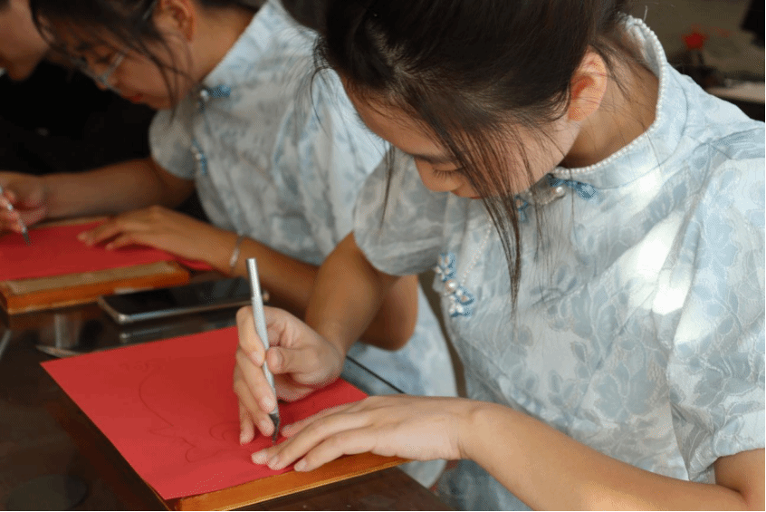 为进一步增强大学生对中华优秀非物质文化遗产所承载的历史与文化价值的认知和认同,开拓眼界,提升审美素养,同时更好地传承和发扬中华优秀“非遗”文化,10月上旬,院团委书记路维、团委老师杨洪泽、王圣洁带领同学们来到了开云在线美育实践基地“沧州市非遗传习所”学习刻纸。非遗传习所所长马振领为大家讲述了刻纸的由来,并且细心教给同学们的入门技巧。