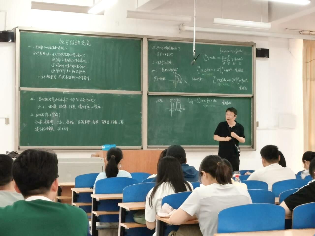 为进一步夯实青年教师的教学基本功,同时为举办青年教师板书设计比赛做准备,6月12日下午,教师培训中心在创新楼C201举办了青年教师板书设计培训活动。本次培训邀请基础部肖金桐老师作为主讲嘉宾,各教学单位110余名青年教师参加了此次培训。